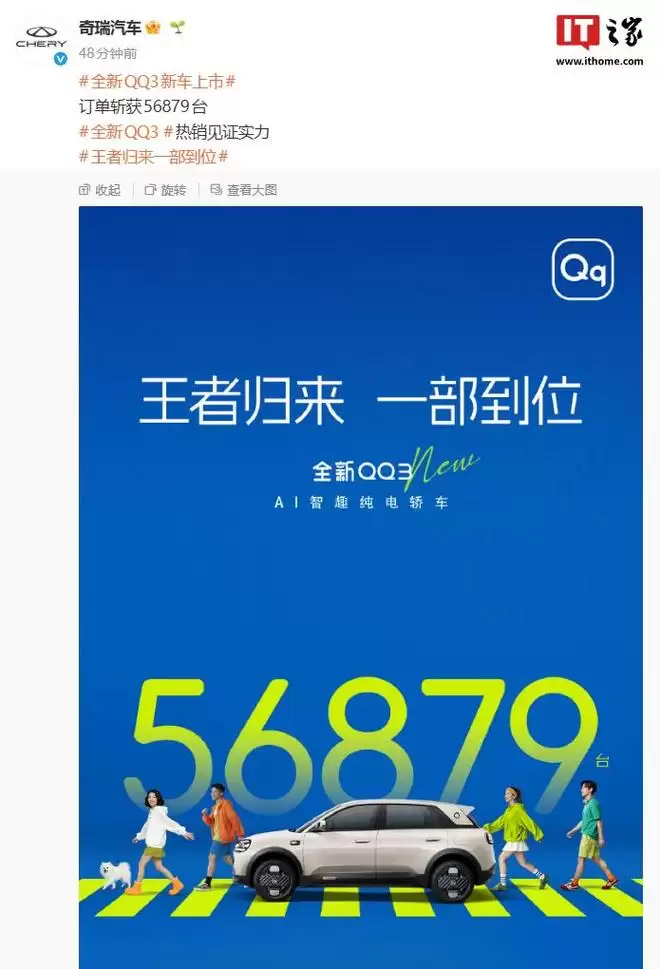 奇瑞QQ3 EV上市订单超5.6万台,限时5.89万起抢购