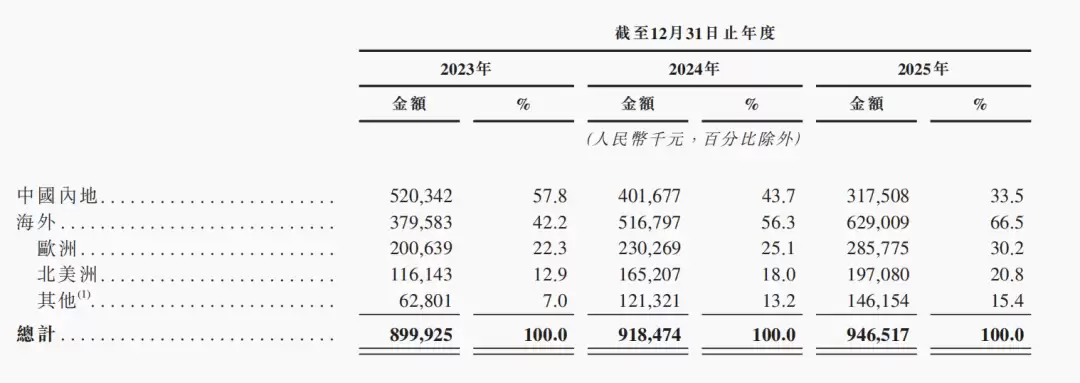 从地区收入来看,绿米联创海外业务是主要收入增长来源,以绿米联创品牌空间智能产品及解决方案计,2024年至2025年间中国内地收入从5.20亿元降至3.18亿元;海外收入从3.80亿元增至6.29亿元,占比从42.2%升至66.5%。