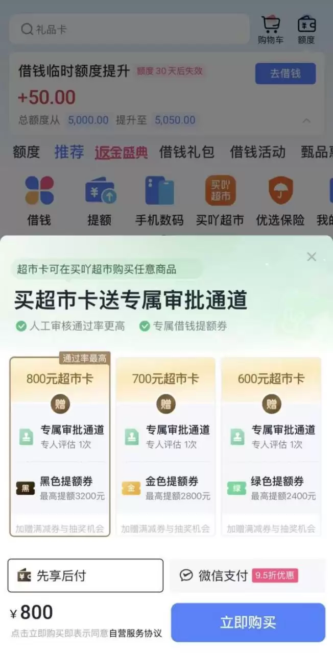 在借款时,被推荐先买超市卡