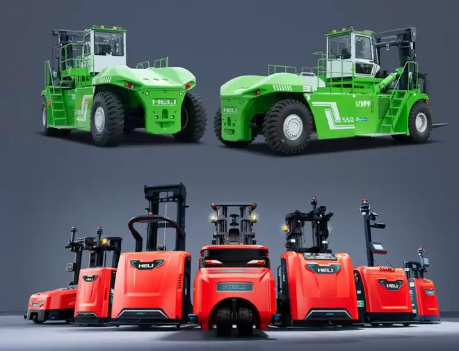 合力55吨锂电叉车和合力i系列智能工业车辆产品。受访者供图