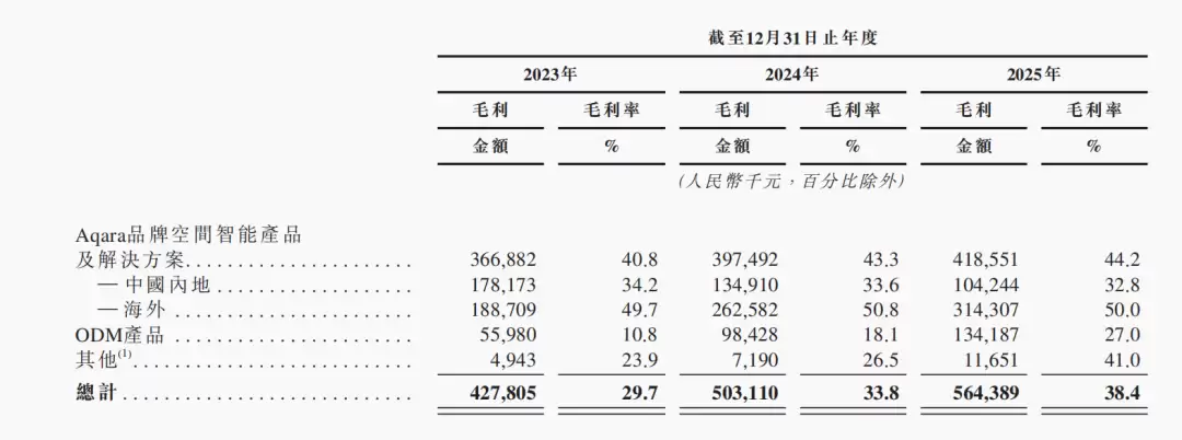 从地区收入来看,海外业务已成为绿米联创的主要增长点。以自有品牌空间智能产品及解决方案计,2024年至2025年间,中国内地收入从5.20亿元降至3.18亿元,而海外收入则从3.80亿元增至6.29亿元,占比从42.2%升至66.5%。这一变化反映出绿米联创在全球市场的拓展成效显著。