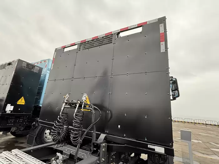 驾驶室设计上,H5新能源牵引车以安全性与舒适性并重。车身采用高强度钢材打造,符合严格的安全标准,为驾乘人员提供全方位保护。内部配置方面,减震座椅、航空环岛式操控台及多功能方向盘的组合,显著提升了操作便捷性。平地板设计使车内空间利用率大幅提升,驾驶员可直立行走,储物区域分布于车门、内饰护板及卧铺下方,满足多样化储物需求。宽大的前挡风玻璃与侧窗配合多角度后视镜系统,为驾驶员提供了开阔的视野,降低行车风险。