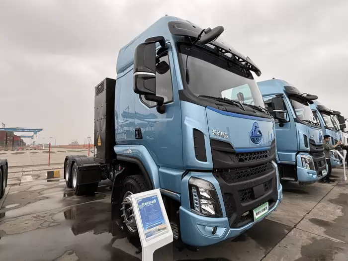 轻量化设计方面,H5新能源牵引车通过材料创新实现突破。车架采用高强度轻量化钢材,传动轴、轮毂等关键部件选用铝合金材质,整车自重低至8.9吨,较同类产品减轻900公斤。在合规载重条件下,每趟运输可多装载900公斤货物,按年运营200天计算,可为车主增加超3.6万元收益。车辆配备ASIL-C级智能控制系统,可根据路况实时调整动力输出,进一步优化能耗表现。