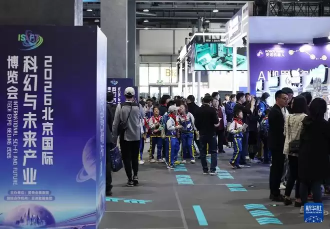 3月27日,学生在2026北京国际科幻与未来产业博览会现场参观。 当日,2026中国科幻大会开幕式在北京首钢国际会展中心举行。同期举办北京国际科幻与未来产业博览会和2026北京科幻嘉年华等活动。 新华社记者 张晨霖 摄