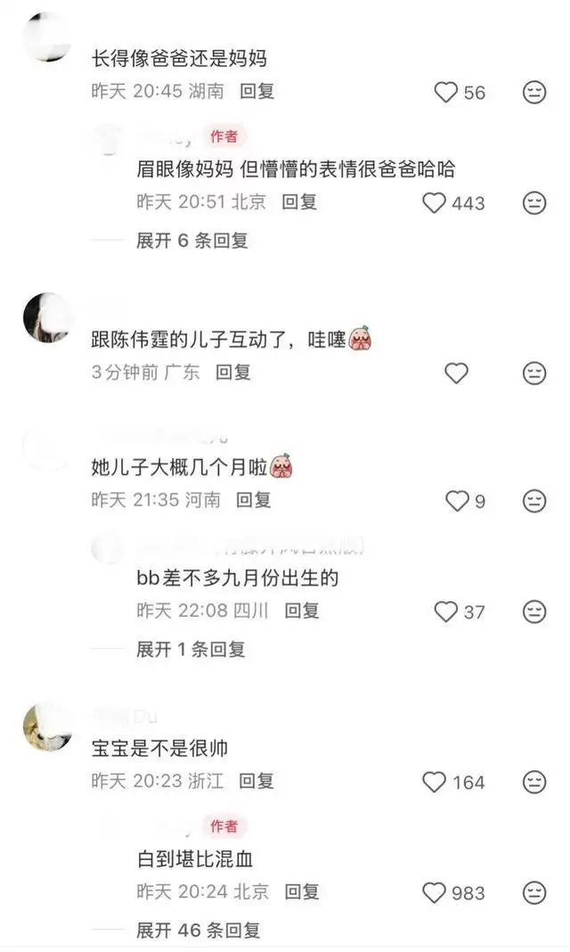 据悉,何穗和陈伟霆的宝宝去年9月出生,10月的时候两人官宣得子,并晒出抱娃照片。