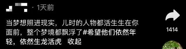 3月30号,有一位网友分享了一段参加聚会的画面,并在留言处感慨:当梦想照进现实,儿时的人物都活生生在你面前,整个梦境都漂浮了。