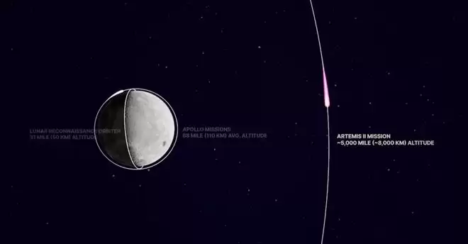 以按时发射计算,"阿耳忒弥斯2号"将超越1970年"阿波罗13号"乘组创下的248,655英里最远距离纪录,预计能够达到252,000英里。
