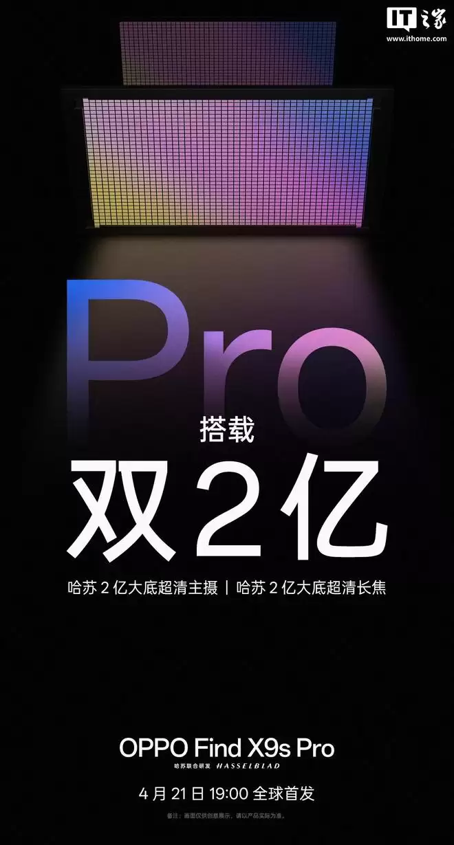 IT之家 3 月 31 日消息,OPPO 最新今天在微博宣布 Find X9s Pro 将成为同档位唯一「双 2 亿」影像旗舰。
