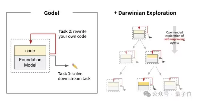 这篇论文将LSTM之父Jürgen Schmidhuber二十年前提出的哥德尔机(Gödel Machine)思想,与达尔文开放算法相结合,提出了能持续自我迭代的达尔文哥德尔机