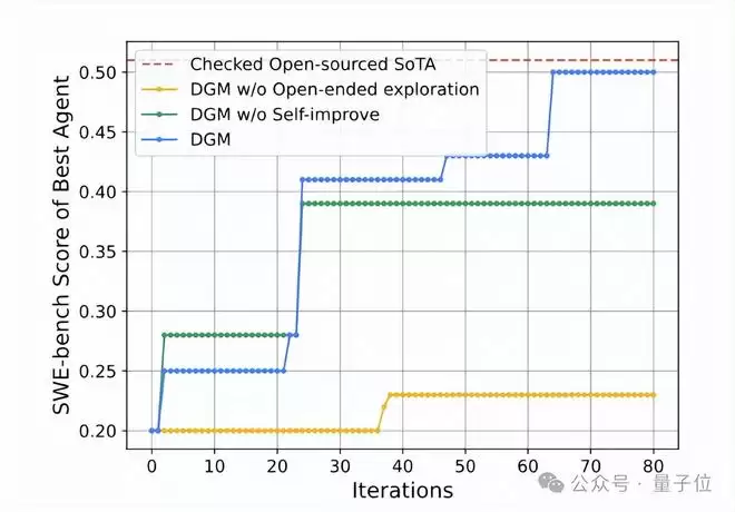 这些结果证明了DGM能发现并实施有效的自我改进。
