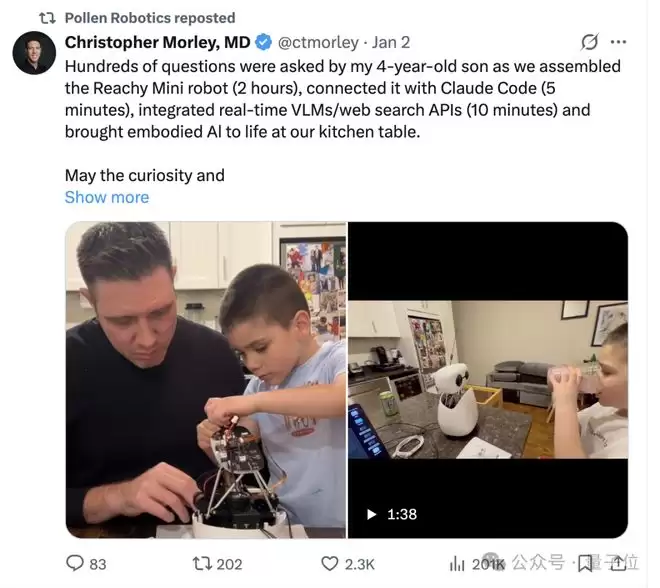 Q:有用户在社交平台分享,说买回Reachy Mini之后需要自己DIY拼装、下载模型、部署环境。对很多非技术背景的人来说,这听起来门槛不低。你们是如何在“可玩性”和“易用性”之间做平衡的?