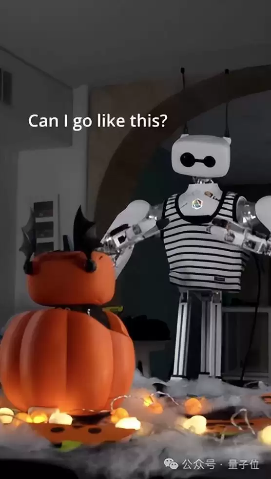 另外,因为它是开源的,用户是可以自己改动外观的。比如换颜色,或者做一些造型上的改造。之前PollenRobotics在万圣节时,就把它改造成南瓜的样子;