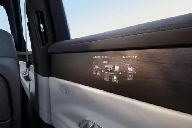 ID. ERA 9X另一个细节之处在于,车内配备了Smart Surface魔术屏,它藏于二排门板的木纹内饰中,有需要时乘客能点亮唤醒,不仅可以调节空调冰箱温度和座椅角度,在开门时还会出现补盲提示,有效避免后排开门杀。