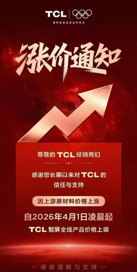 TCL方面表示,电视行业受芯片与面板成本影响预计涨幅5%-20%;海信则因自研芯片能力,在一定程度上缓解了成本压力,线下涨幅更平缓;西门子等部分厨电产品因补贴退出,单台涨幅超千元。