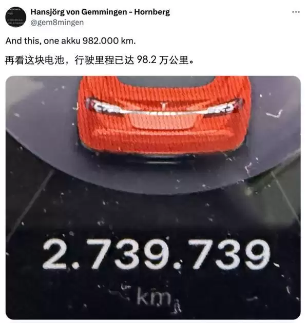 据悉,这辆二手Model S P85+隶属德国车主Hansjrg Gemmingen,他在2014年购入,买时已行驶了3万公里,由于自己和妻子常年开着它长途旅行,到2019年11月,里程达到100万公里;2024年4月,又冲到了200万公里,将近1年时间又增加了70万公里。
