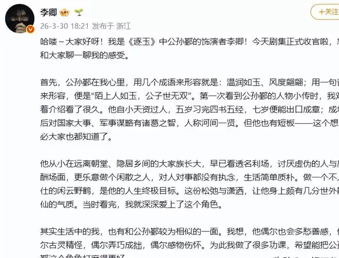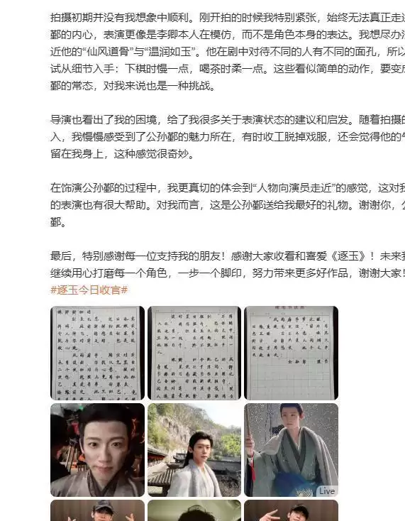 而等到电视剧彻底播完,演员们也是开启了惯常的“收官小作文”部分。
