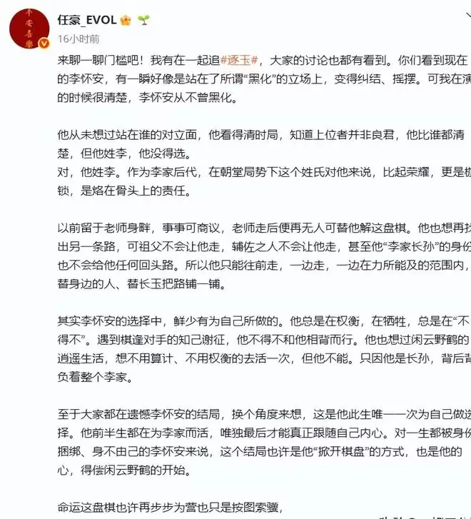 在发布收官小作文的时候,他明显是比张凌赫勇敢的,还写到了观众的争议。