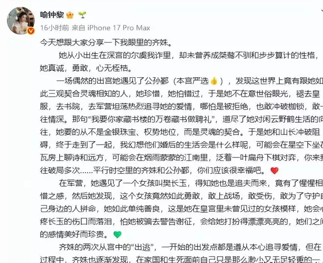 等到看了喻钟黎的收官小作文,有种两个人商量好了炒CP,但没炒对位置的感觉。