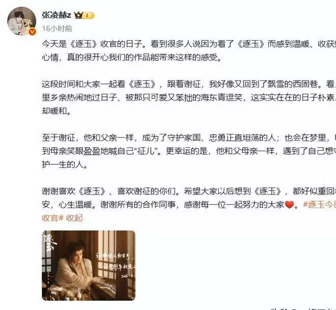 张凌赫、田曦薇等众星发文告别《逐玉》 《逐玉》收官:张凌赫、田曦薇与众主演深情告别