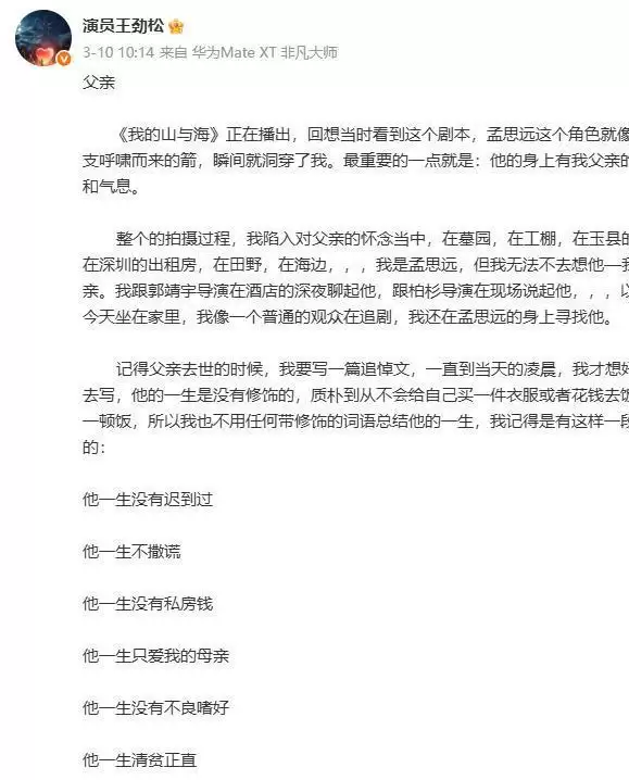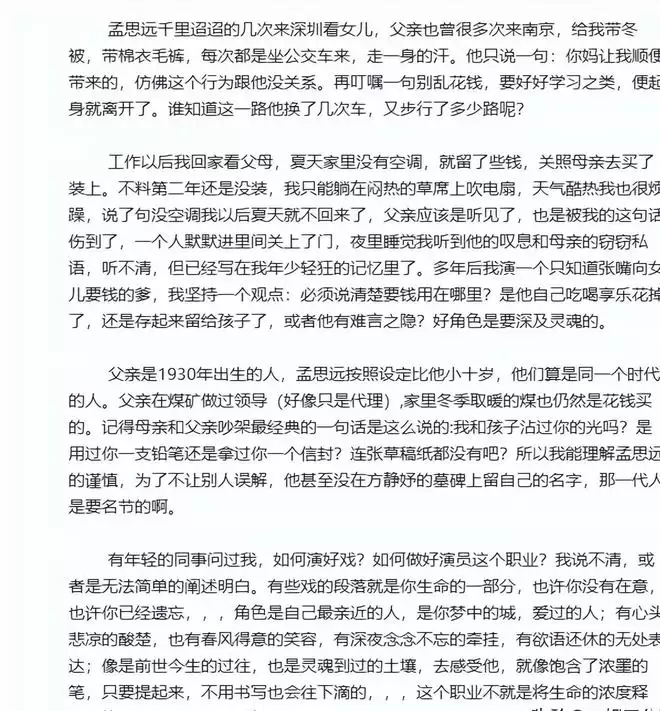 然后又拿出了感情充沛的《父亲》长文,讲述了自己演戏过程中,寻找到父亲和角色的共鸣。