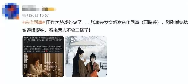 不过,因为张凌赫笼统感谢了“合作的同事”,所以他和田曦薇的一些CP粉也是破防了。