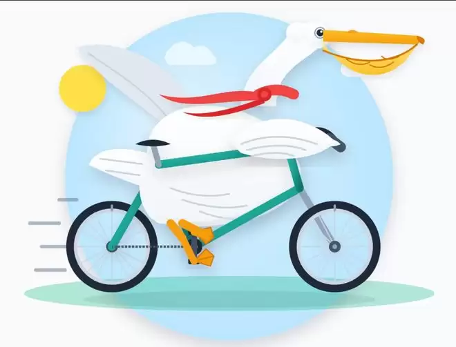 SVG画鹈鹕骑自行车,一周前还是右边的样子,昨天就已经进化成了左边这样。