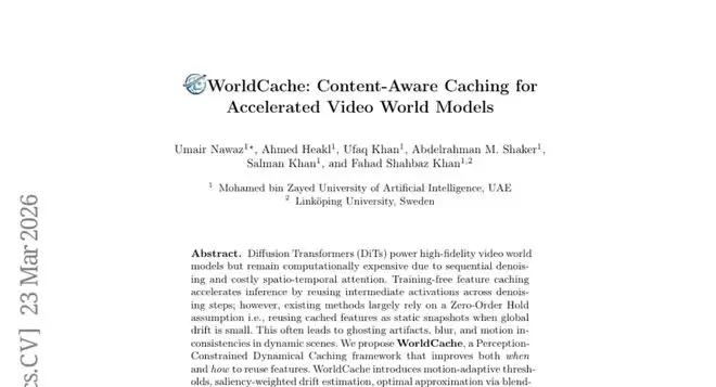 为了解决这个难题,研究团队开发了一个名为WorldCache的创新框架。这个框架的核心思想是将缓存从简单的"复制粘贴"升级为智能的"感知约束动态近似"。简单来说,就是让AI系统变得更聪明,能够根据画面的实际变化情况来决定何时重用之前的计算结果,以及如何对这些结果进行智能调整。