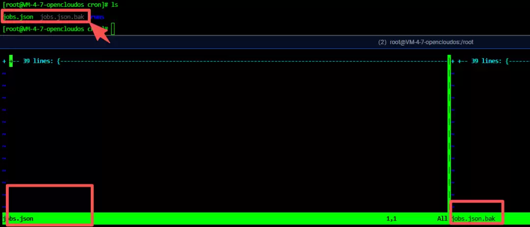 登录服务器查看,果然找到了对应的`jobs.json`文件。根据之前的经验,OpenClaw在修改定时任务时,理应会生成一个备份文件`jobs.json.bak`。