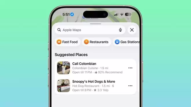 据报道,苹果地图将加入新的推荐地点功能,可根据附近热门地点及最近搜索记录推荐目的地。