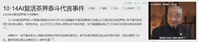 “茶界泰斗”张天福的AI视频事件便是典型缩影。某茶企利用AI技术生成张天福的数字形象用于产品推广,却在其家属内部引发严重分歧:一方主张此举系传承茶文化,且持有逝者生前授权的相关文件;另一方则强烈反对,认为在未经充分商议的情况下将逝者形象商业化,既是对逝者的不敬,也令亲属陷入情感困扰。