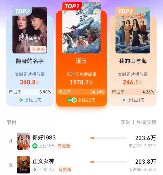 当前收视率最高5部剧集:《逐玉》热度不减,你在追哪部