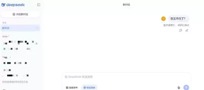 三言尝试与DeepSeek对话,但是无论输入什么内容,均无响应,最终显示“服务器繁忙,请稍后重试”。