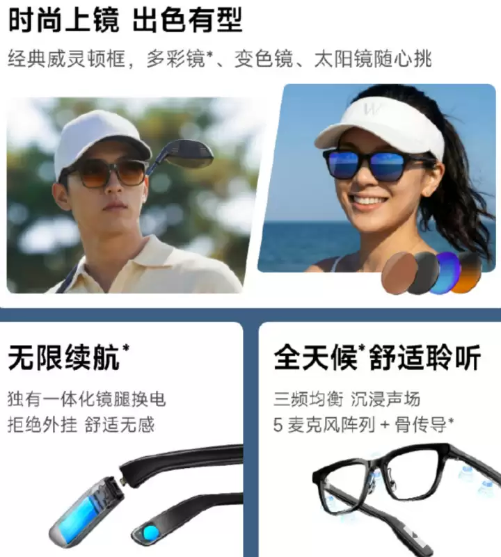 从核心的影像能力来看,千问AI眼镜G1主打的是第一人称视角拍摄。其亮点在于反应速度,号称能在0.6秒内完成极速抓拍,而画质则依托于1200万像素的硬件基础。为了满足不同用户的佩戴需求,它提供了多种款式选择,包括经典的威灵顿框型,以及多彩镜片、可根据光线变色的镜片和专业的太阳镜款。