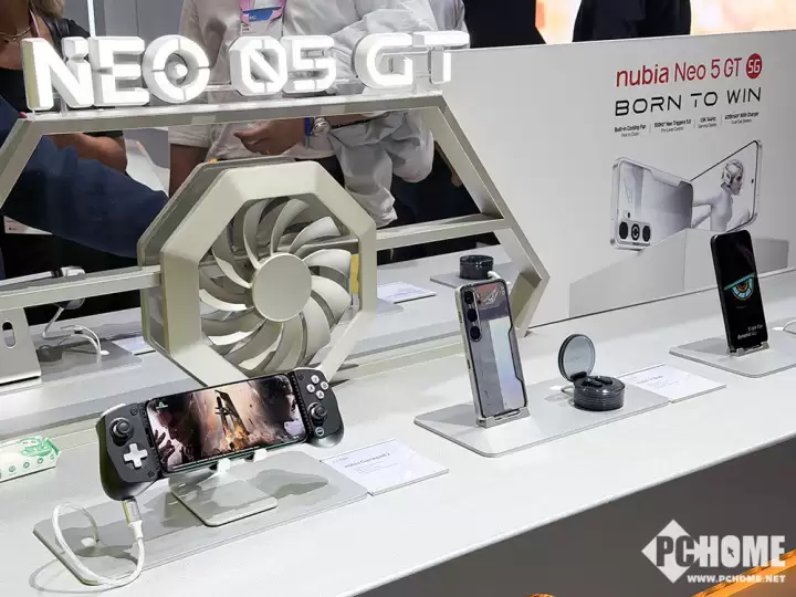 更有意思的是,努比亚Neo 5系列并不仅限于手机本身。现场展示显示,它可以搭配一套专业手柄配件,连接后分居手机两侧,瞬间就能变身为一台掌上游戏机。此外,搭配nubia GT Buds耳机与磁吸散热风扇,能够构建出更为沉浸和完整的移动游戏装备生态。