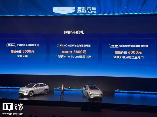 另外,吉利还为博越 REV 增程 SUV 带来了限时升舱礼: