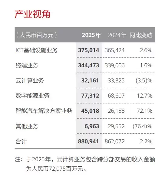 ICT基础设施业务:2025年收入3750.14亿元,同比增长2.6%。