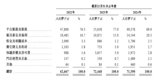 除此之外,根据招股书,2024年-2024年,铜师傅在平台服务及推广方面的开支分别为4780万元、5565.8万元、4937.8万元,显著高于同期的研发支出1880.2万元、2863.8万元、2821.2万元。