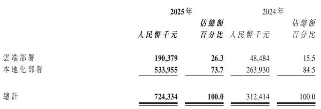 智谱2025年本地化部署收入为5.34亿元,较上同期的2.64亿元增长102.3%,此项增长主要得益于本集团通过持续迭代提升模型智能上界,模型通用性的增强和市场的需求维持强劲。