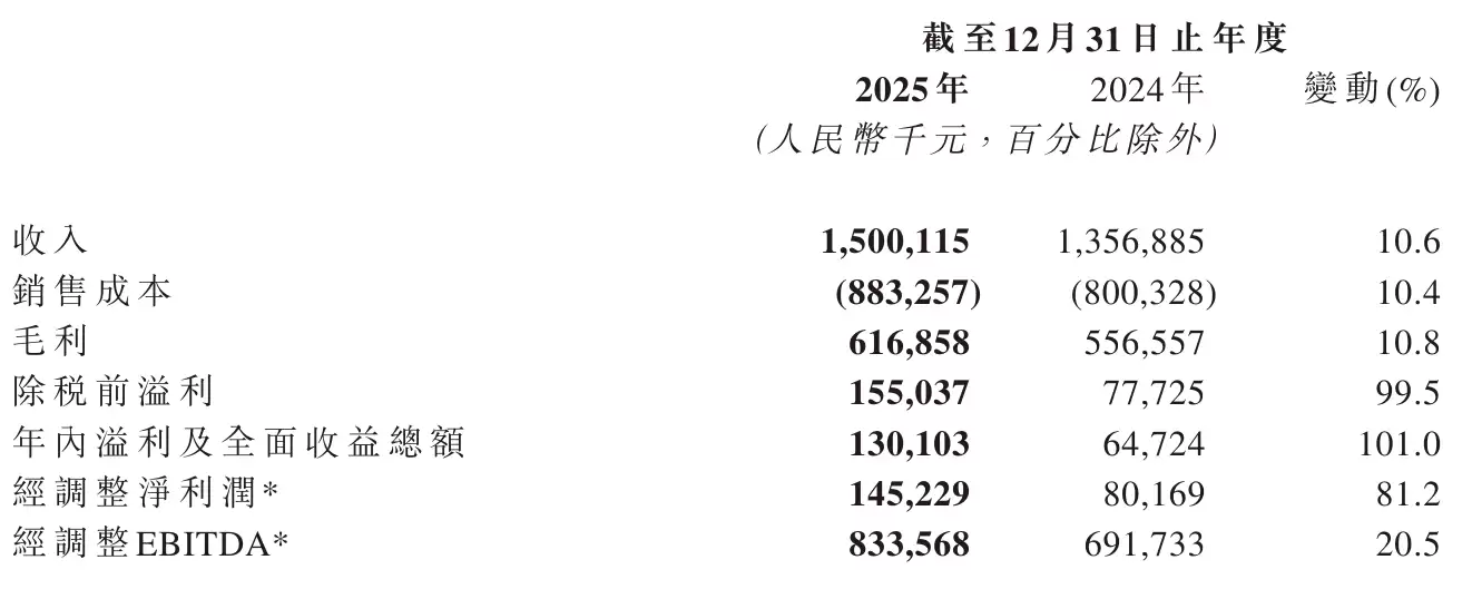 易点云2025年年内利润为1.3亿元,较上年同期的6472万元增长101%。易点云2025年经调整净利为1.45亿元,较上年同期的8017万元增长81.2%;经调整EBITDA为8.34亿元,较上年同期的6.92亿元增长20.5%。