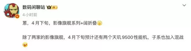 今天,博主@数码闲聊站 的一份爆料中提到,“4月下旬,影像旗舰系列+阔折叠”。
