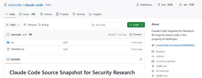 数小时内,泄露代码已被“热心网友”归档至 GitHub,获得超过 13,000 颗星和 20,000 次 fork。