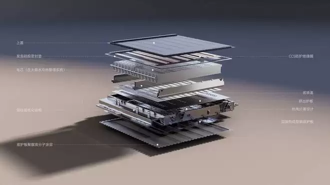 动力电池部分,品牌与宁德时代联合开发全地形专用骁遥增混电池。快充性能方面,峰值充电速度可达 6 C,峰值充电功率为 350 kW。电池采用宁德时代 「0 无热扩散」 技术,实现高压与烟气主动隔离,并采用定向向下热导流设计。电池底部使用超强特种钢与 FD 高分子防爆耐磨涂层组合。根据最新数据,其撕裂强度为常规 PVC 的 10 倍,冲击强度达到国标的 7 倍,防盐雾周期可达 20 年。
