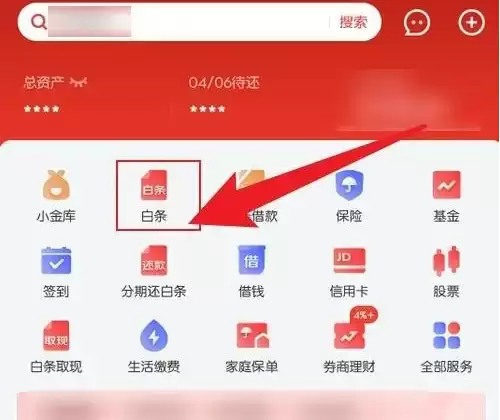 打开京东金融软件主界面,点击打开白条。