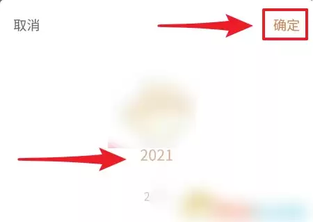 5、在年份列表框上,通过上下滑过来选择年份(如:2024),之后点击【确定】按钮。