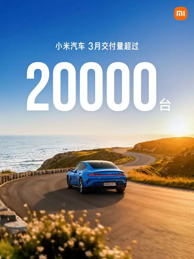 4月1日,据小米汽车消息,2026年3月,小米汽车交付量超过20000台。新一代SU7自3月23日开启交付起,累计交付已超7000台。