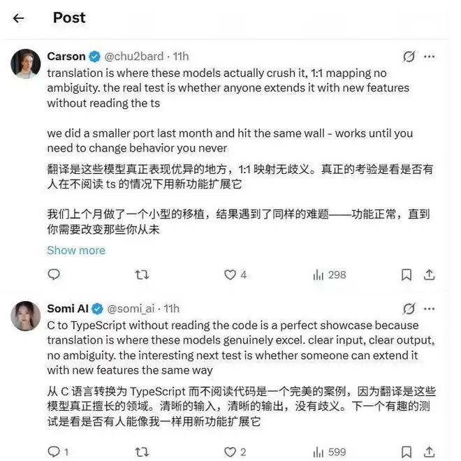 具体来看,Ehrlich编写了一个「桥接层」,能够调用原始C代码,然后运行基于属性的测试,要求AI生成的TypeScript移植版必须产生完全相同的行为。AI生成代码,之后测试验证,再自动迭代,如此持续循环。