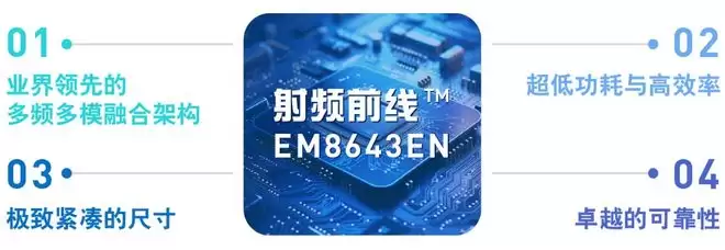 同时,开元通信还发布了几款衍生产品:首款支持全球蜂窝物联网的PAMiD产品EM8643E(4.0mm×6.8mm),支持卫星通信的最小模组EM8643N(4.0mm×4.0mm),支持全网通蜂窝物联网的最小模组EM8643S(4.0mm×4.0mm),共同构成开元通信“射频前线™”首发产品系列,满足客户小型化低成本专用射频模组的市场需求。