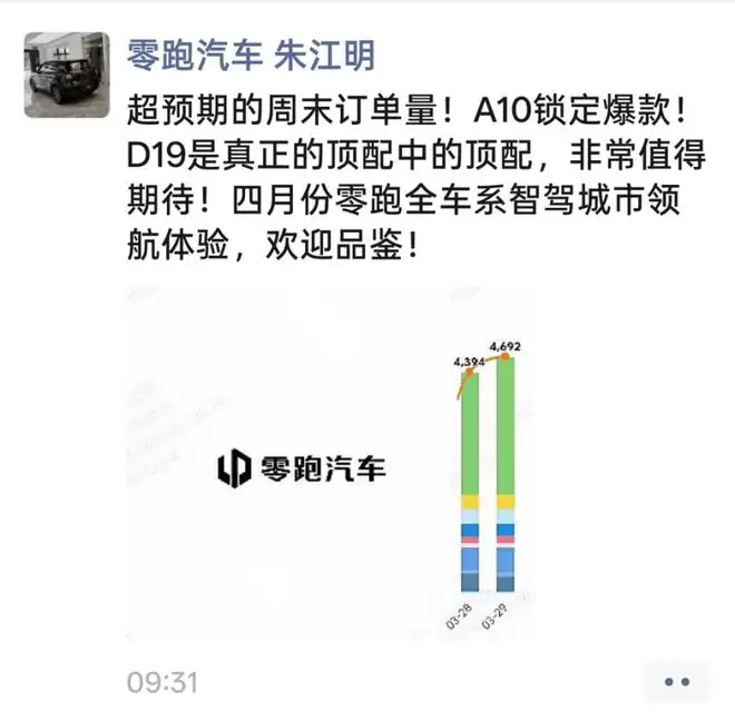 A10上市即爆款,3月的最后一个周末,零跑周六大定订单达4394台,周日持续高热,维持在4692台高位,共超9000+台。零跑以强势表现,率先引领电车市场复苏,得益于ABCD全系列的协同爆发,印证了“全域自研”与“好而不贵”品牌主张已深入用户心智。