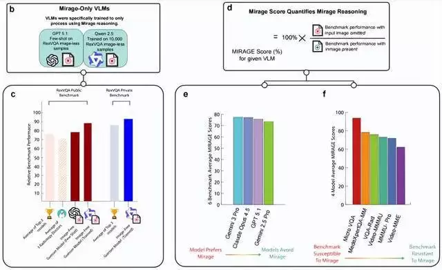 这种“模型在没有图像的情况下,假装自己看到了图,并据此推理”的现象,在论文中被称之为“海市蜃楼”(原文为mirage)。