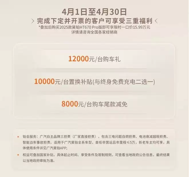 IT之家 4 月 1 日消息,4 月 1 日(今天)上午,广汽昊铂通过最新公众号宣布:4 月购广汽昊铂 HT,限时一口价 15.99 万元起。